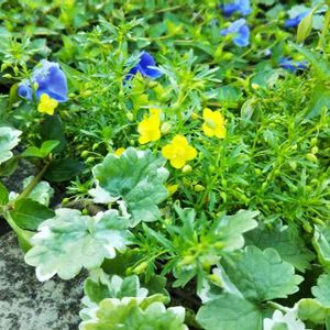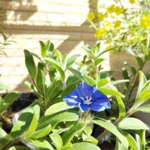 さし芽で冬越ししたアメリカンブルー。 去年上手く咲かせられず、だめ元でさし芽をしていました。 このブルーが大好きです✨ 花壇におりるのはもう少し待って下さい🍀 右の黄色い小花はリトルチュチュ💛 去年花壇から鉢上げ後、冬越ししました。 花壇にも少し残っていたので、霜除けしていたら、新芽が出て花が咲き出しています💛