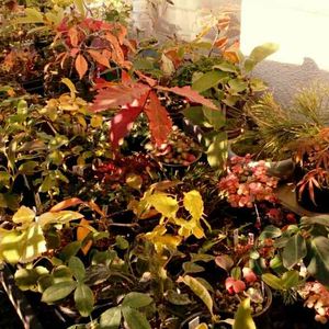 一昨日は雪もチラついたのに、今日はなんだか暖かく小春日和😊 棚場も紅葉の盛り。 そろそろ冬囲いの準備しなければ。 (ブツブツに見えるのはラティスからの木漏れ日でして)