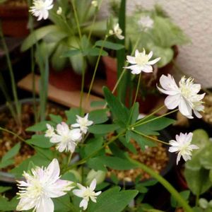 明日からの展示会の準備をして来ました。 二年前に種を採って撒いた深山オダマキは、淡い紫が出て何とも儚げでよい感じ。