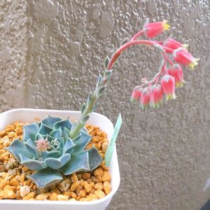 Echeveria halbingeri=hyalina var. sanchez-mejoradae,Gilo(köhres名称) 略して、ギロ🤣 こんなに平べったくなってしまいました〜😩 仕立て直しが必要みたい😅 来年に期待しようー٩( ᐛ )و✨ と、昨年もいってました🤣