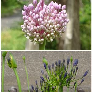 おはようございます😃 🏷金曜日の蕾たち 上段 アリウムギガンチウム 下段 アガパンサス 散歩道で 5月28日