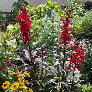 ほんとに、背が高くなりました。 宿根 ロベリア‼️ 待ちに待ったロベリアの真っ赤なお花も、 咲いてきたので、この寄せ植えも、 仕上がった感じかな❤️💛 いっしょに植えたまん丸あたまの アフリカンマリーゴールドは、不調だけどね💦 ちょっとバランスが〜(^◇^;) それにしても、宿根ロベリア、 素敵なお花でした。