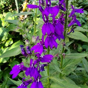 宿根ロベリア✿︎ PWスーパーベナ・アイストゥインクル✿︎ ロベリアは2年目 高さ60センチ、幅40センチ位 暑さ寒さに強くて零れ種でも増えます。 挿し木、株分けも出来ます🎶 写真が撮りにくいので去年はUPしてません😅 実物の方が良いです💜 アイストゥインクルは3年目 挿し木の子です🌱 両方とも開花期が長くて強いお花です💜