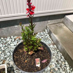 宿根ロベリア 別名 ベニバナサワギキョウ キキョウ科 ミゾカクシ属 宿根なので毎年咲きます。 株分けして花友さんに差し上げました💗