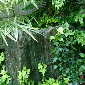 ヘデラ ヒイラギナンテン 笹 モッコク…に囲まれて 埋もれそうになっている庭石 ヘデラは生育旺盛で 取っても 取っても… 気根を出して石に 登っていきます #石の日