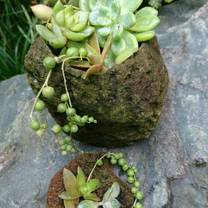 軽石でできた鉢に 植えた多肉植物 鉢にはうっすらと 苔も生えてきて いい感じ…♡ 14日は#石の日