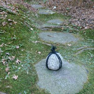 #石の日に参加します 「この先の立ち入りはご遠慮下 さい」 「石がない方を通って下さい」を知らせるために置かれている関守石(せきもりいし) 茶室のある日本庭園や寺院などで見かけます 庭の趣を壊さないさりげなさ たった一つの石で結界をつくるという発想 日本文化って素晴らしい! 北鎌倉 東慶寺にて📷