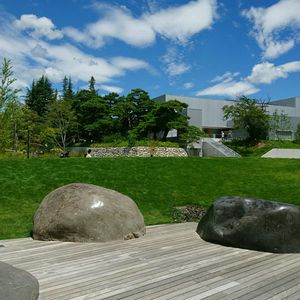 #石の日に……② 冨永敦也 作「巨石の記憶」 美術館の建設工事の際に 地下6メートルくらいの 場所から石がたくさん 出てきた… その中でもひときは大きな 石3つを磨きオブジェにした そうです ツルツル ピカピカ スベスベの 綺麗な石✨✨に思わず 頬ずりしたくなりました💦😅 2022.8.11 長野市 長野県立美術館にて📷