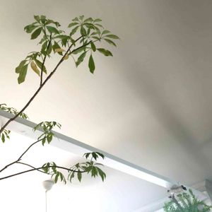 君はもしや……ブラッサイアくん⁈(・□・;) 4年半位前に、〝3鉢で〜〟のコーナーからやって来た名無しの権兵衛くん。2.5号ポット位だったかな。 ずっとちびっこのままで、茎(幹)も緑で細くて、葉も3枚葉とかで、窮屈そうなそぶりも全然見せなかったから、土は変えても、ずっと同じ鉢に植えてた。 どうも私はこの鉢シリーズ(左に写っている)で育てるのが苦手みたい。それすら気づいていなかった。気に入ってるからかな。 そのせいなのか何なのか、今年の春に鉢替えをするまで、この子の正体がわからなかった。 鉢を変えた途端、メキメキとやる気を出して、さらに大きい鉢をもらい、今は一丁前に大きな6枚葉をつけるようになった! 幹が太くなって木質化もしてきて、葉柄の色も茶色っぽくなって、男前になってきた! 4年間もうちにいたのに、気づかなくてごめん(>_<) 今まで特等席を与えることもなく、「野草みたい?…じゃない⁈」とか、「あれ?何か茎がアスパラっぽくなってきたね(この辺でやっとシェフレラなんじゃないかと気づく)」とか、言ってごめん(T ^ T) 水に流して〜(T ^ T) 来年は摘芯もして、もっと男前目指そうね‼︎