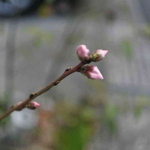 我が家の桃にピンクの蕾 もうすぐ咲きます。 山梨の桃畑でもらった 台木用の完熟桃の種から 育った木です。 毎年咲きます。 鉢植えなので、大きな実は つきません。 害虫にも強いので、花を見るには良いです。