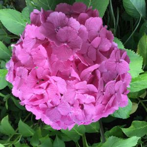 鮮やかなピンク色の紫陽花。出先で撮影。 身近なところでは青紫系が多かったので、はっとするような鮮やかな色合いが目を惹きました✨