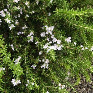 ツリージャーマンダー🌿 ローズマリー(半匍匐)🌿 ツリージャーマンダーを3箇所くらい植えてあるのですが、日当たりの悪い場所に植えてしまったものが徒長気味でした。 でも、茎が少しひょろひょろな分、つる植物のように小さなリースみたいにできました😅 ローズマリーを一周からませて、私的にいい感じです😊