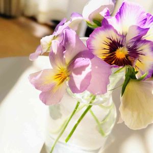 プランターのパンジー・ビオラちゃん達に楽しませてもらってます🥰 好きなときにお部屋に飾れるのが嬉しい〜✨
