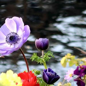 アネモネ 今日は雑司ヶ谷七福神巡りで池袋エリアを 満喫!デパートの屋上にある庭園には池の縁に アネモネが可愛らしく咲いてました💜 西武池袋本店屋上「睡蓮の庭」にて。