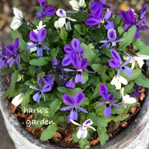 ビオラ 碧いうさぎ💙 2月と3月にも投稿している同じ鉢なのだけど、素晴らしい花数になりました💠 これで1ポット分🌱 立派です✨