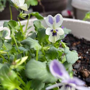 ビオラ🌷*゚ 寄せ植えから 『碧いうさぎ』とラベルにありました。 どうしてこんな風に色が入るのかな? 不思議だけど可愛いなぁ〜😆︎💕︎ ホントにパンジービオラの進化に今更ながらビックリです✨