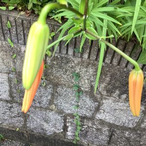 お散歩道にユリのつぼみがありました。 種類は、わかりません🤔 綺麗✨な色をしているので咲くのが楽しみ😊です。