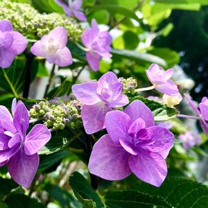 庭の「がく紫陽花」 今年も咲きました❣️ 植えて十数年、思い出のアジサイ なので特に大事にしています♬