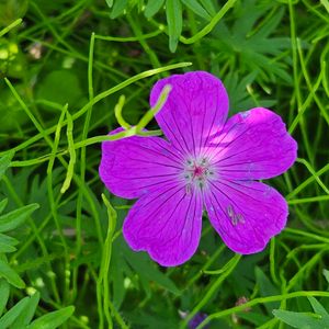 花は約4cmほどの5弁花 紅紫色に濃い色の脈が入ります🎶 曙風露(あけぼのふうろ) フウロソウ科