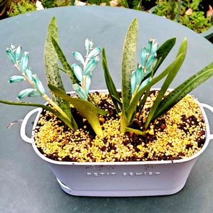 ラケナリア ヴィリディフローラさん💙 去年から鉢に植えっぱなし🪴ですが きれいに咲いています💠💠 金属光沢みたいな不思議な色合いに 魅せられてます🤗✨🌿✨🌿