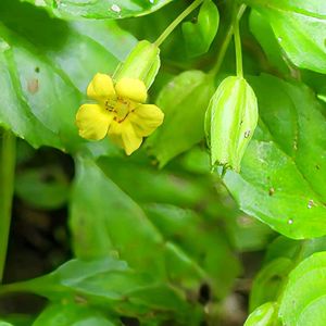ミゾホオズキ ハエドクソウ科 溝酸漿 在来種 多年草 山道の脇の清流の流れているところに、咲いていました。お花は、直径1cm位です。 溝に生え、果実の様子がナス科のホオズキに似ているため名が付けられたそうです。果実も見てみたいです👀