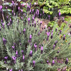 フレンチラベンダー💜 何年も植えっぱなしでこんなに大きくなりました😅 元々は近所のスーパーで50円か100円で買ってきた小さな苗でした。 その当時名前も知らずにウサギのラベンダー💜と呼んで買ってきました😆🎶 隣に白いフレンチラベンダーもあるけれど飲み込みそうな勢いです💦💦