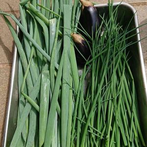 【今日の収穫】 『あさつき』 『葉ネギ』 『茄子』🍆 雨で折れているものが 多くなっていたので少し 収穫して直ぐに使わない分は 刻んで冷凍しておきます👍 野菜高いから少しでも無駄にしないようにしないとね😅