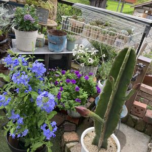 おはようございます🌞 柱サボテンに花芽が5つ…二つ落ちてしまい残り3つどうか咲きますように🙏 ルリマツリ…前回から1ヶ月も経たないうちに又咲き続けてます💙💙💙