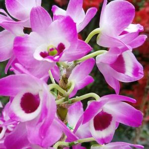 今日のお花💠デンドロビウム もともと樹木に着生していた洋ランで 丈夫で寒さに強く 育てやすいものです。 特にこのヒマラヤ原産の「ノビル系」のものは 凍らなければ冬越しできます。 この原産地(山岳地帯)で この花が自生する理由として、 二つの必須条件があります。 1️⃣太陽☀︎*.。の光がよく当たる場所であること。 2️⃣昼間は絶えることない微風🍃彡が吹いていること。 このため密林の中や 風通しの悪い盆地では 一株の自生も見ることができないそうです。 今年3月実家の小庭にて📸 バックの赤🟥はボケの花です。