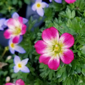 ディアシア💠ダーラ 『Diasia』の名前は ギリシャ語の"Dis”(二つ)+"Askos”(袋)が語源です。 花の背面に2本の距(角状の突起)があることから、 この特徴が 和名のニカクソウ(2角草) 英名のツインズバー(Twinspur) の由来にもなっています。 花径2〜3cmほどの特徴ある花の形がキュートな、 常緑❀多年草です。