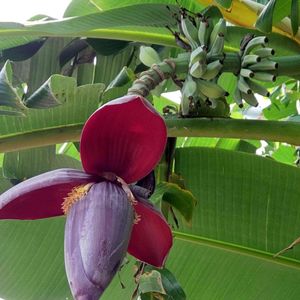 道路脇に生えてたモンキー🍌の花(だと思うんだけど...😅)と青い実 畠のような感じはしないんだけど🤔、まるで、丈の高い雑草のように無造作にまとまって生えてる🤯