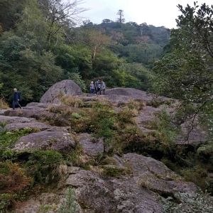 こんな岩場を乗り越えて、2枚目からの写真のような沢山の杉🌲や色んな種類の苔🧩や滝🩵を見に👁️🗨️行きました。空気はキレイだし、🌞天候にも恵まれて😆✌️