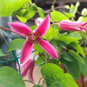 クレマチス プリンセス・ダイアナ 4年目の開花🤗 いつも高い場所で咲くので 今年は誘引を横に伸ばして 様子を見てました👀 例年よりは いい感じになったかな🤔 もっとたわわに咲くのが 理想やけど。。 まだつぼみがあるぞ❣️ 梅雨で痛みませんように🙏