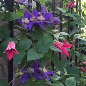 クレマチス3種とグロリオサとフウセンカズラのサマーカーテン☀ 花は少なめ…
