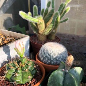こんにちは😊 もう暑さにバテバテ😵💦 梅雨が無かったじゃん❗️ 梅雨やだなぁ〜って思ってましたが… ちょっと雨が恋しく思ってしまう🤔 昨日は日の出のママchianのお店へ🚙🌬 取置きしてもらってたアトミーと ハオルチア テネラを受取りに😁 が、ママchianのいつもながらの元気なトークに 気がつけば2時間😝 斑入りのしじみ蝶🦋にパステル 綺麗なピンクのピンキーと 手を出していなかったニョロニョロ系サボテン🌵 この子達のトゲは痛くない😁 また新たなニョロニョロサボの存在を 熱くママchianに語られ 根付いたらまた受取りに行く事に😆👍