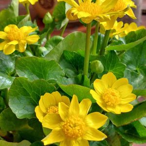 🏷️16日はイエローの日と知って イエローと言えば!畑の隅で咲いていたのを、叔父さんが鉢植えにしてくれたリュウキンカ あっという間に満開に🟡🟡🟡 元気なイエローを投稿しますね!