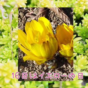 🏷16日はイエローの日💛 お散歩で見つけた福寿草と我が家の地植えのセダムちゃん✨ 福寿草って地面からニョキってお花だけ顔出すのね🤩 たくましくって美しい🤗