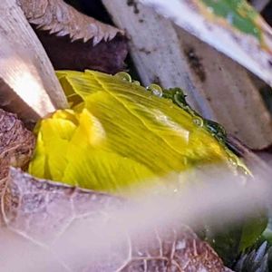 今朝、いよいよ福寿草が 水滴を纏って顔を出しました。 毎年いつの間にか咲いていて、 一番乗りを見ることが出来たのは初めてです。…春が近いですね。 はちまんさんの 🏷16日はイエローの日… 初めて参加させて頂きます。 🏷幸せの黄色いお花 🏷水滴の水曜日 🏷グリーンアクセサリー♪