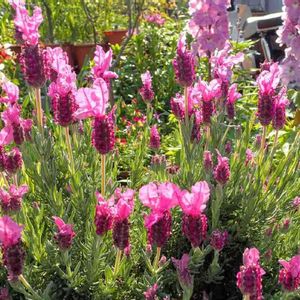 今日のお花、ラベンダーです。これも、ストエカス系の品種で、ザ・プリンセスといいます。濃いピンクが鮮やかで花付良く、香りも高く、とても丈夫です😃ピンク系のラベンダーでは、超おすすめかも(*^^*)