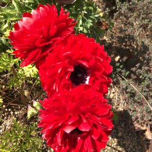 アネモネ3姉妹が1度に咲きました🌸 寒いからかな〜みんなくっ付いています😆