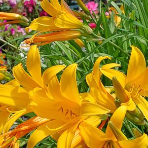 姫菅草(ヒメカンゾウ) ユリ科、ワスレナグサ属の 栽培種で 、朝咲いて 夕方には しぼむ 1日 花です 。 一つの花茎に蕾がいくつか用意されていて 次々と咲きます。 花言葉💛 別れた恋心🌿 憂いを忘れる