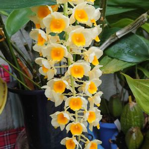デンドロビュームデンシフローラムが黄色くなってきましたよ。