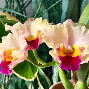 今年は珍しく黄色が強く開花です。 いつもはもっとピンクが強く出るんですが、その年で色が違うのも楽しみの一つです💕 札落ちのカトレア、何回株分けしたかわからない元気な子です😁❤️