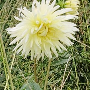 草茫々の中で🌟黄色のダリアが咲きました。 育ってるのも忘れてました。 ごめんね! でも最初の花を見ることができました 家の中外の花を減らさないと! 私の考え・思い・お世話の範囲を越えている