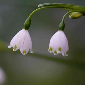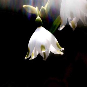 スノーフレーク(鈴蘭水仙) Summer snowflake 春(花期は3月~4月)、スズランに似た白い清楚な花 スノーフレークの花言葉は「純粋」「純潔」「汚れなき心」「皆をひきつける魅力」 バックが黒いと白さが一際輝いて見えてキレイでした。