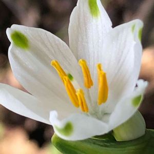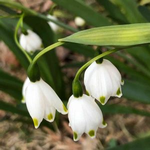 おはようございます。 スノーフレーク ヒガンバナ科 和名 オオマツユキソウ スズランスイセン 花言葉 「 純粋 」 スノードロップと 間違いやすいですが… 緑色の模様の位置が違いますね。☺️