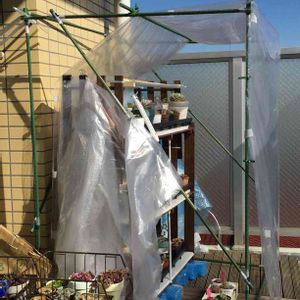おはようございます☀😃 我が家の簡易温室 昼バージョンです。 スノコの手作り多肉棚に 農業用ビニールをマンションベランダの手すりに引っ掛けて エアーパッキンで風対策🍃 現在8時 ベランダ気温5℃簡易温室?11℃ 晴れると 冬でも多肉ちゃんには💕😊かな 今日も 多肉事で 始まりました😉❤️ 11時気温 22℃😀