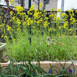 デッカー植え 仕込んでおいたムスカリが咲きました! 初デッカー植えでギュウギュウ 芽が出てくるか不安でしたが、隙間をぬって顔を出してくれました\( ˆoˆ )/ 植物の密密は有りって事で… 次のチューリップも楽しみです