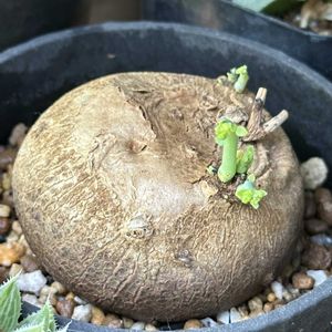 買った時は葉っぱが1つついてて秋に枯れ、それから芋状態だった。 もうダメかなと思ってた‼️ 1つは葉っぱ3枚、もうひとつは遅れて芽が😍 肥料とか、日当たりとか育て方がほとんど無い状態で、とにかく部屋の温度の高いところを行ったり来たり💦朝陽の当たる窓際で芽を出した💖 可愛すぎる〜💚ᩚ🤍ᩚ💚ᩚ🤍ᩚ💚ᩚ🤍ᩚ💚ᩚ🤍ᩚ💚ᩚ