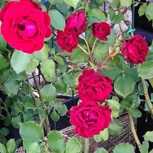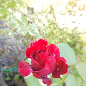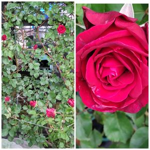 パーゴラのフェンスのドン・ファン 今年はベト病にならず、咲ききれないこともなく、順調に咲いてるね😊 この黒みを帯びた赤は尾登なの赤✨